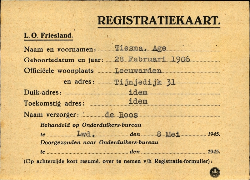 Onderduikregistratie van Age Tiesma