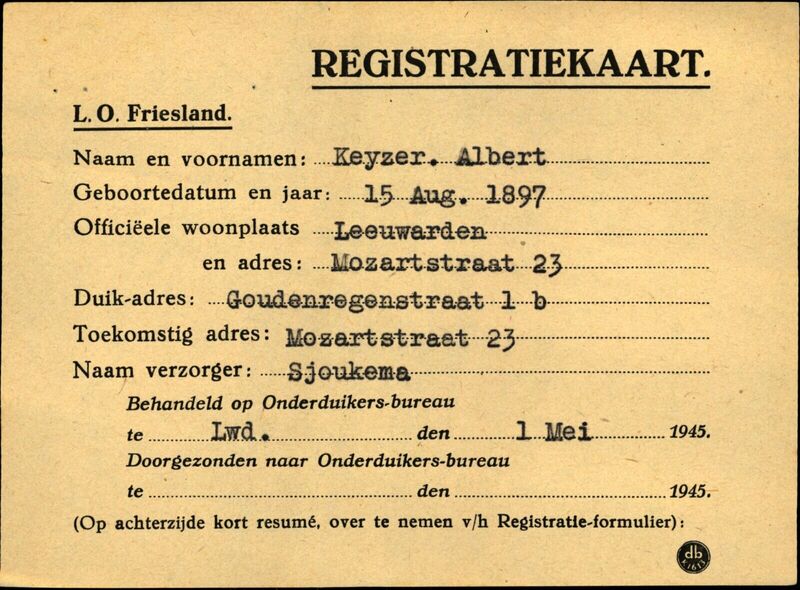 Onderduikinschrijving van Albert Keyzer