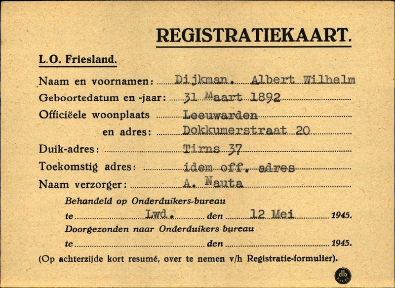 Onderduikinschrijving van Albert Wilhelm Dijkman