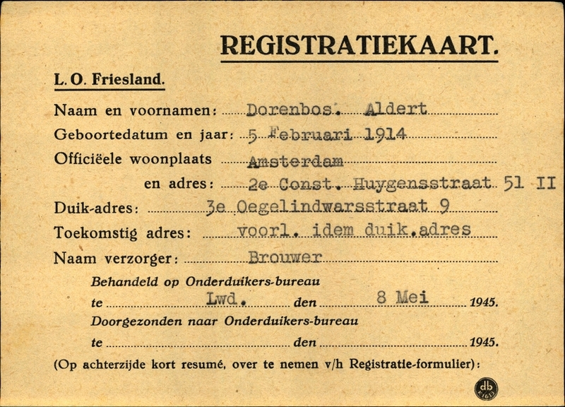 Onderduikinschrijving van Aldert Dorenbos