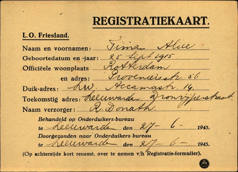 Duikadres: Accamastraat 14, Leeuwarden - Oorspronkelijk adres: Proveniersstraat 56, Rotterdam - Reden onderduik: anderszins