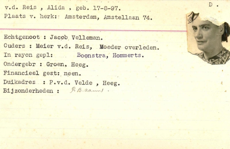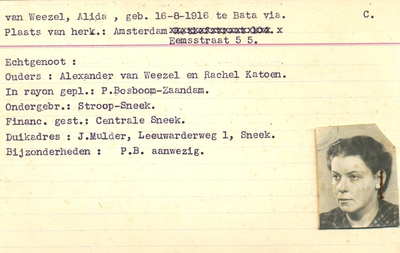 Onderduikinschrijving van Alida van Weezel