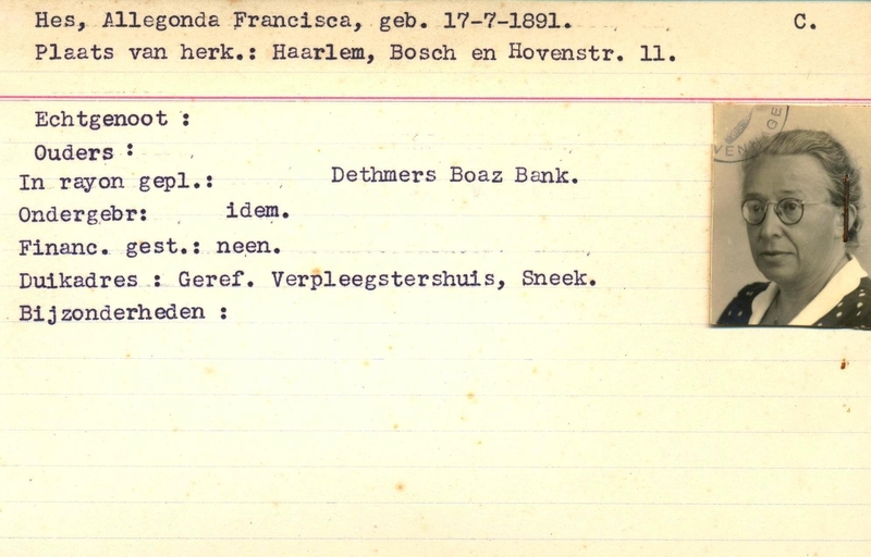 Duikadres: Sneek - Oorspronkelijk adres: Bos en Hovenstraat 11, Haarlem - Overige opmerkingen: Bijzonderheden: met foto