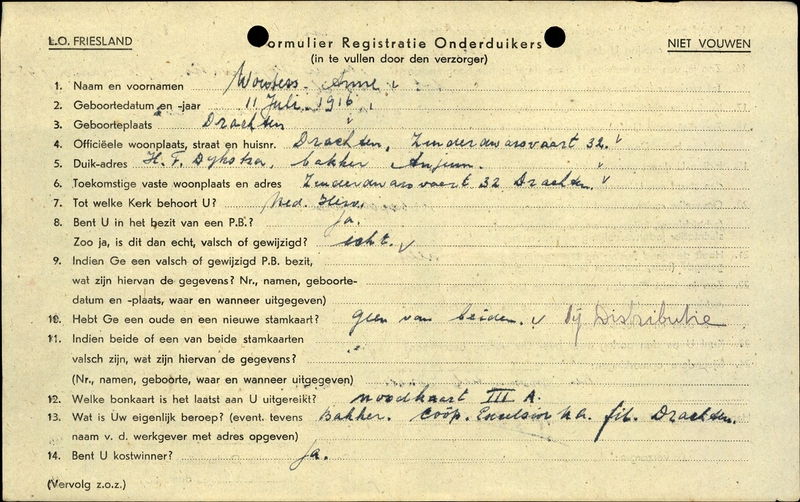 Onderduikinschrijving van Anne Wouters