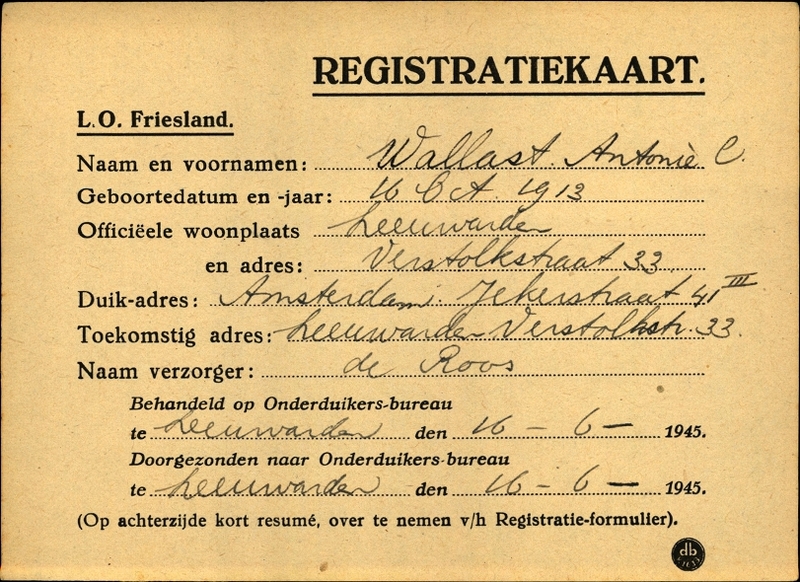 Duikadres: Jekerstraat 41 III, Amsterdam - Oorspronkelijk adres: Verstolkstraat 33, Leeuwarden