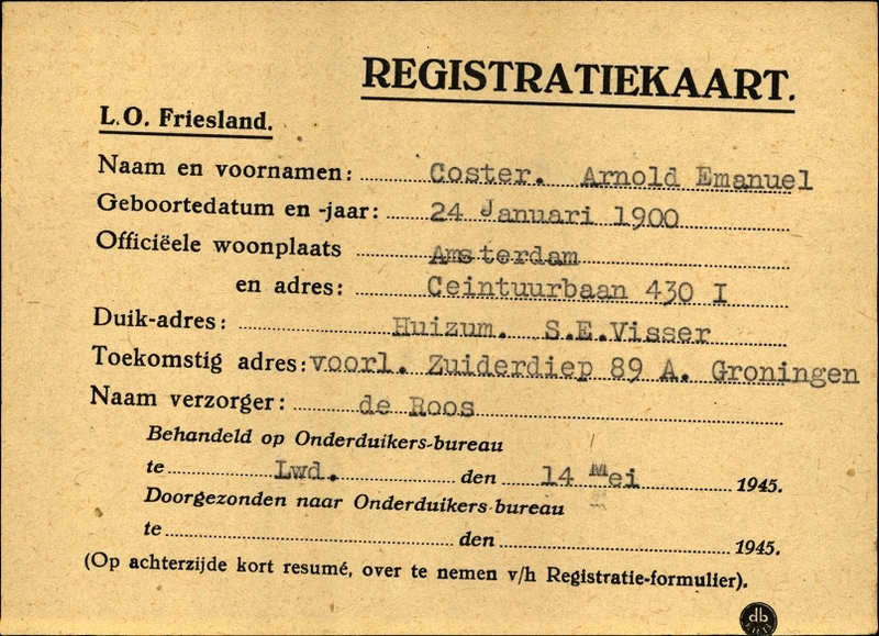 Onderduikinschrijving van Arnold Emanuel Coster