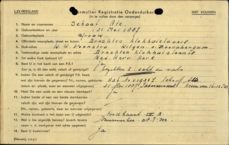 Onderduikinschrijving van Ate Schaaf