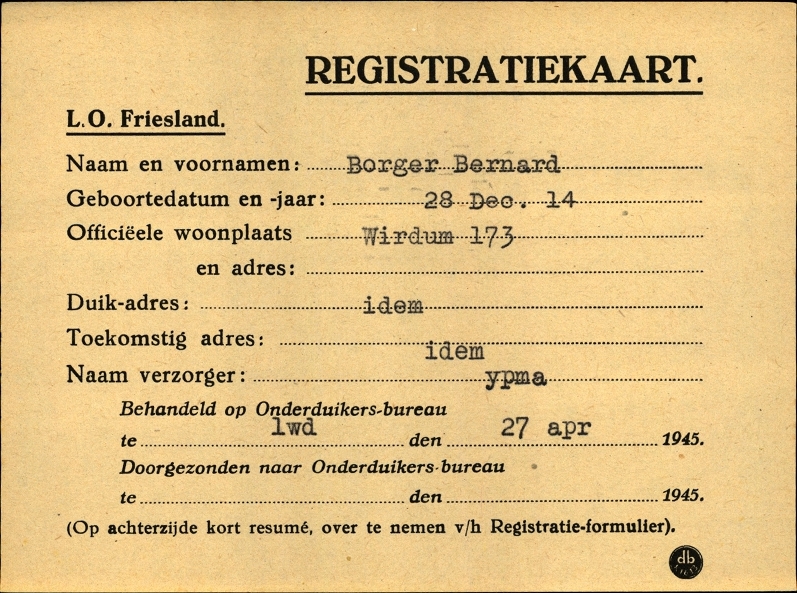 Onderduikinschrijving van Bernard Borger