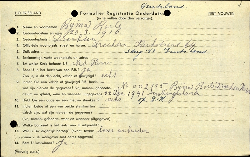 Onderduikinschrijving van Boele Bijma