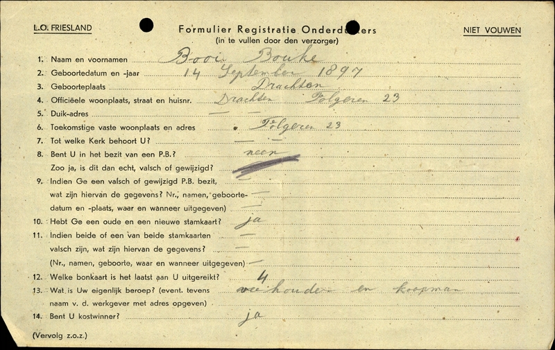 Onderduikinschrijving van Bouke Booi
