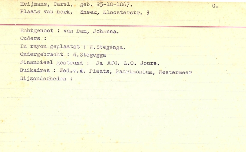 Duikadres: Westermeer, Joure - Oorspronkelijk adres: Kloosterstraat 3, Sneek - Overige opmerkingen: Bijzonderheden: Financieel gesteund: Ja Afd. L.O. Joure.