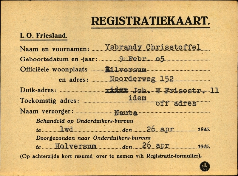 Onderduikregistratie van Chrisstoffel Ysbrandy