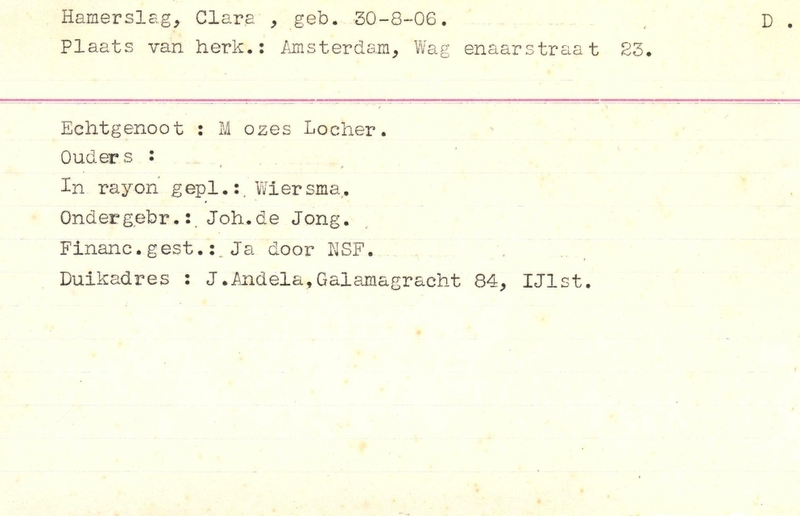Onderduikinschrijving van Clara Hamerslag