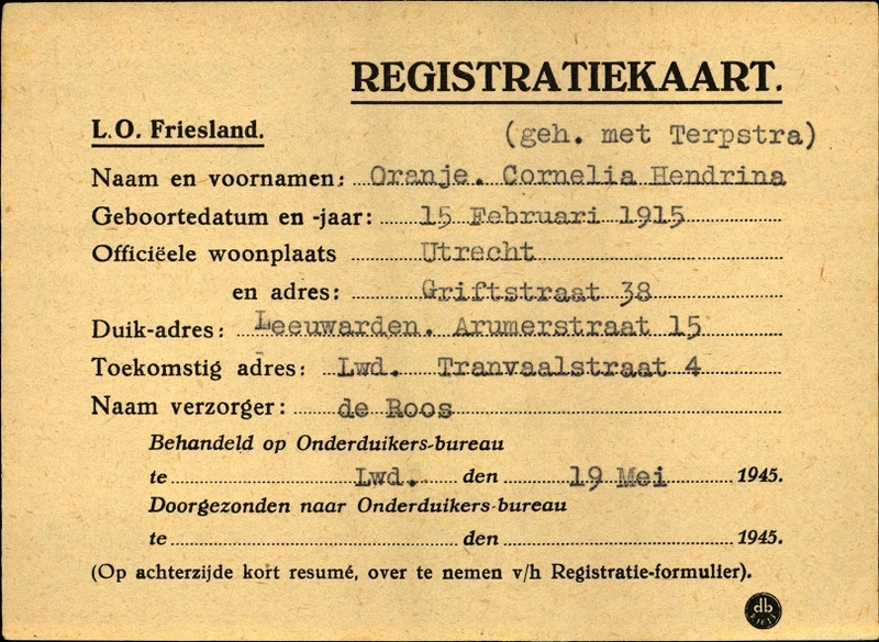 Onderduikinschrijving van Cornelia Hendrina Oranje