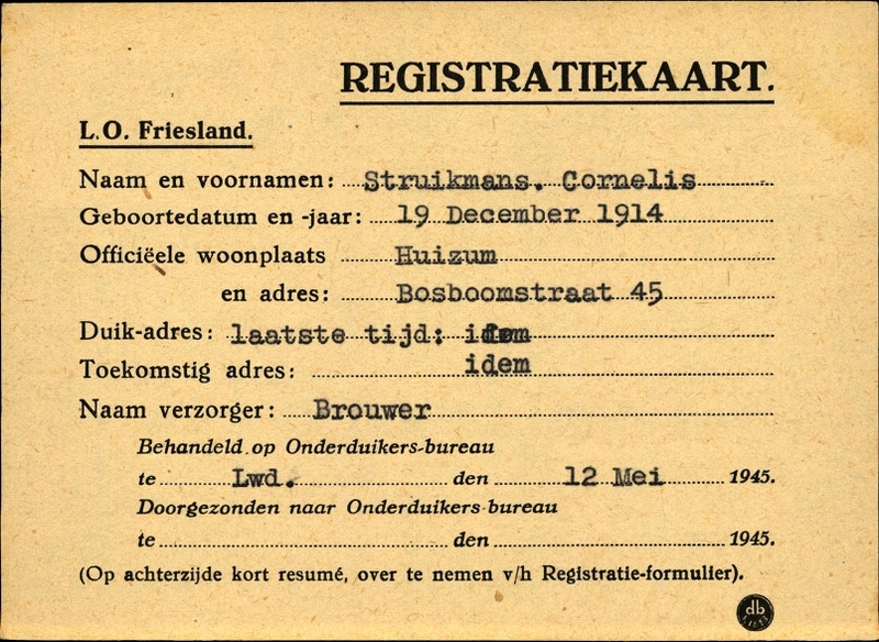 Onderduikinschrijving van Cornelis Struikmans
