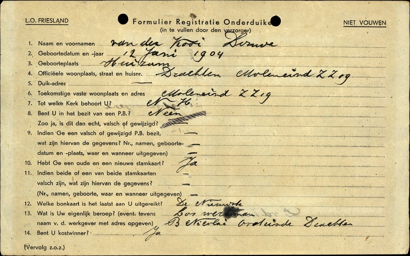 - Oorspronkelijk adres: Moleneind Zuidzijde 19, Drachten - Reden onderduik: krijgsgevangene