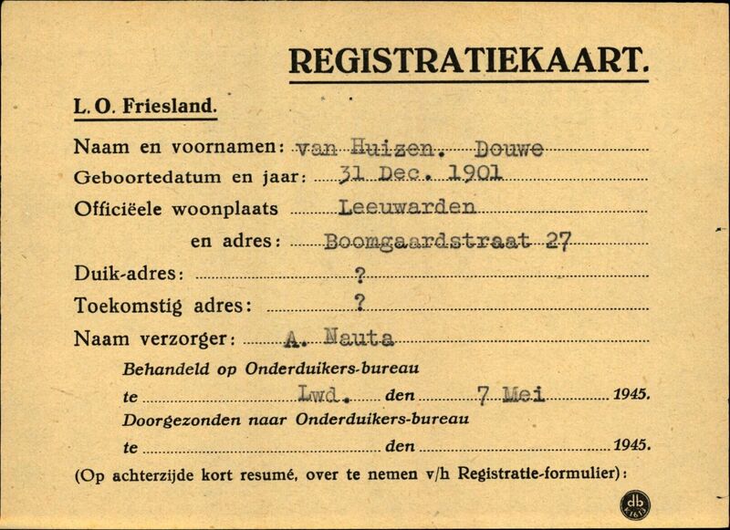 Onderduikinschrijving van Douwe van Huizen