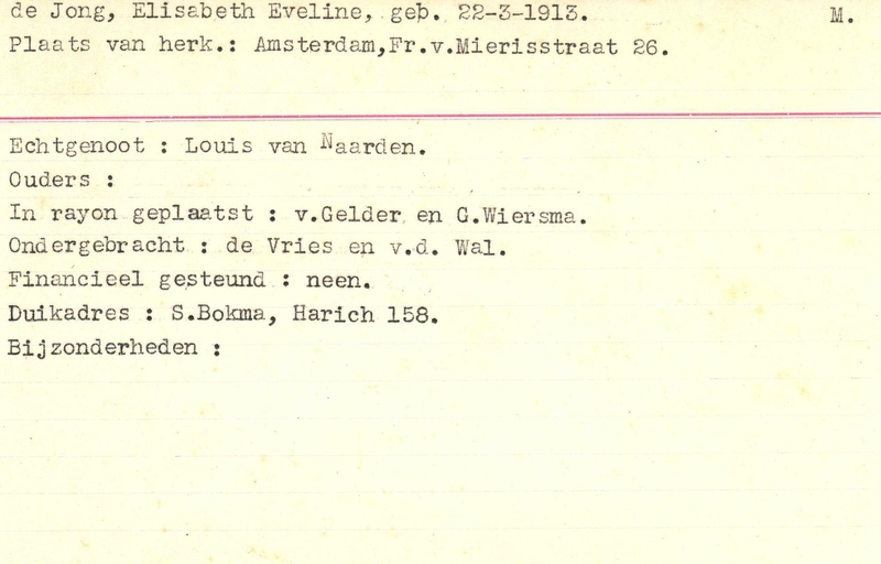 Onderduikregistratie van Elisabeth Eveline de Jong