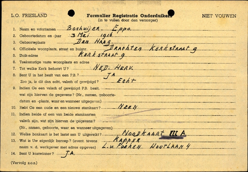 Onderduikregistratie van Eppo Boshuijer