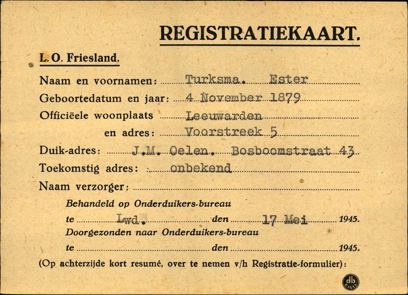 Onderduikinschrijving van Ester Turksma