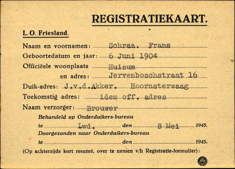 Onderduikinschrijving van Frans Schraa