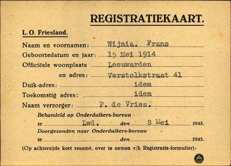 Onderduikinschrijving van Frans Wijnia