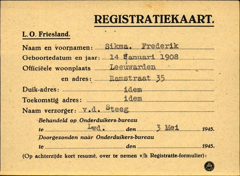 Onderduikinschrijving van Frederik Sikma