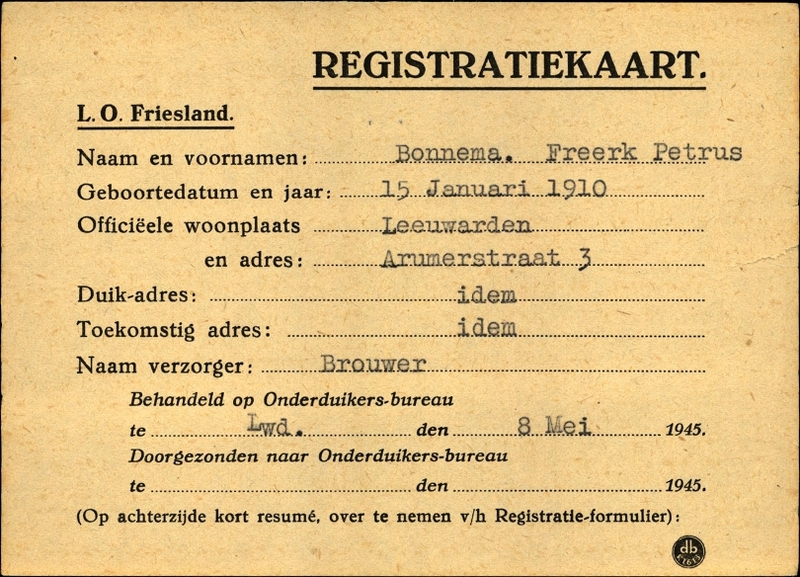 Onderduikinschrijving van Freerk Petrus Bonnema