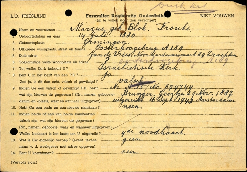 Onderduikinschrijving van Frouke Blok