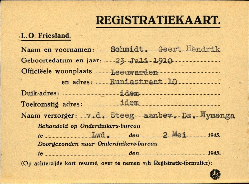 Onderduikinschrijving van Geert Hendrik Schmidt