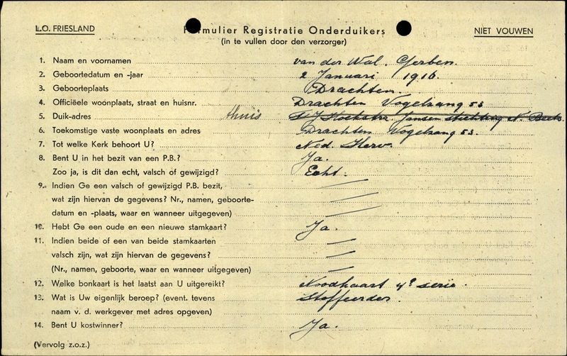Onderduikinschrijving van Gerben van der Wal
