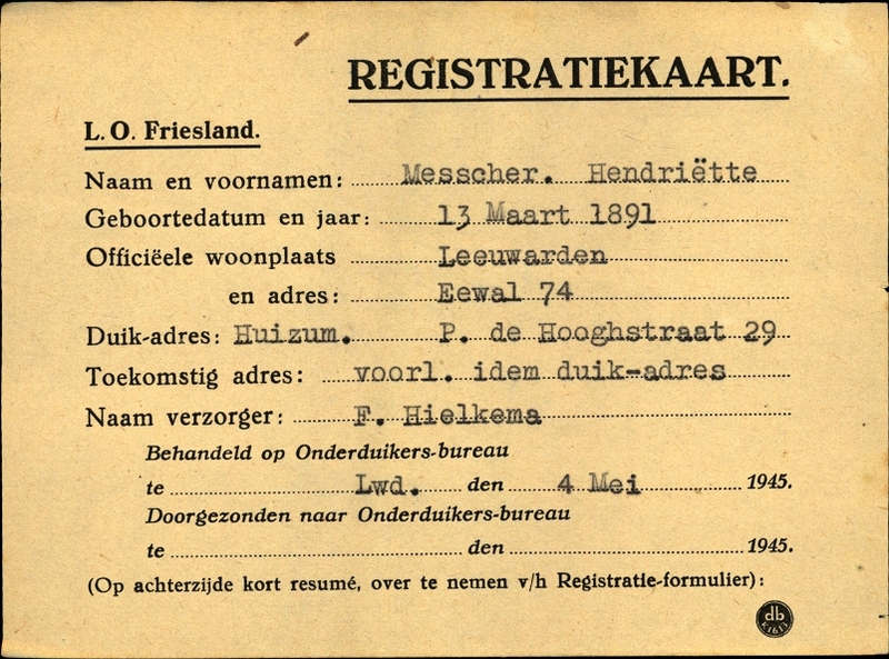 Onderduikregistratie van Hendriëtte Messcher