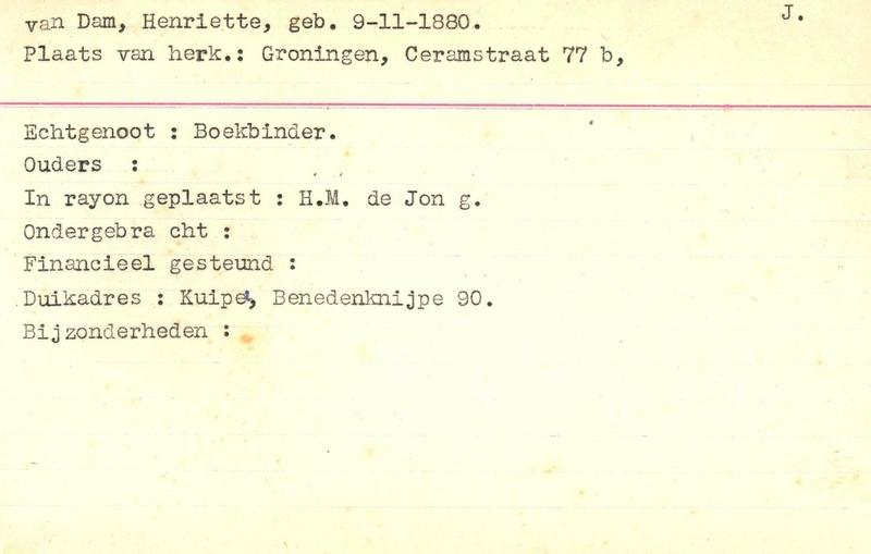 Onderduikregistratie van Henriëtte van Dam