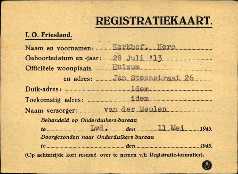 Onderduikinschrijving van Hero Kerkhof