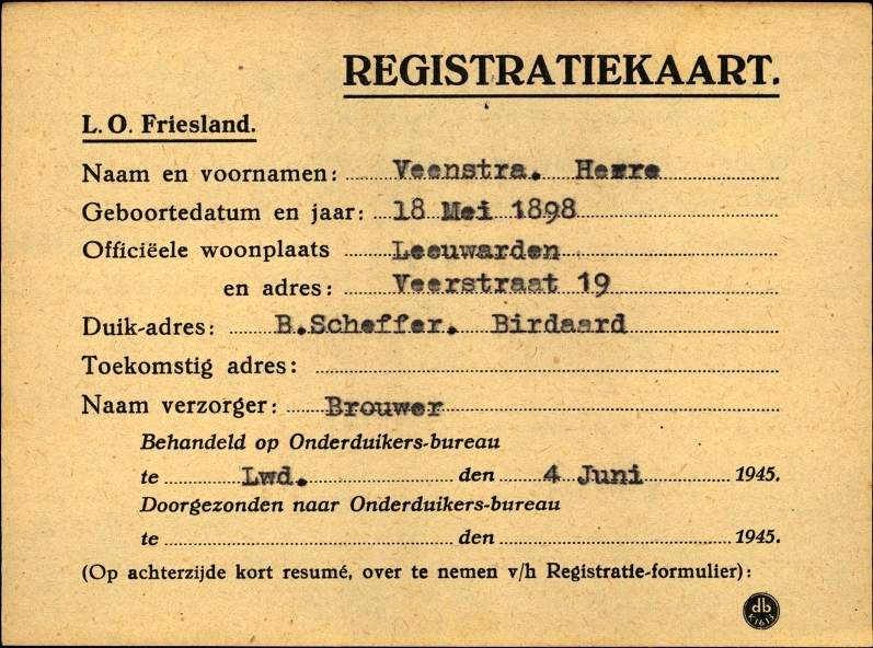 Onderduikinschrijving van Herre Veenstra