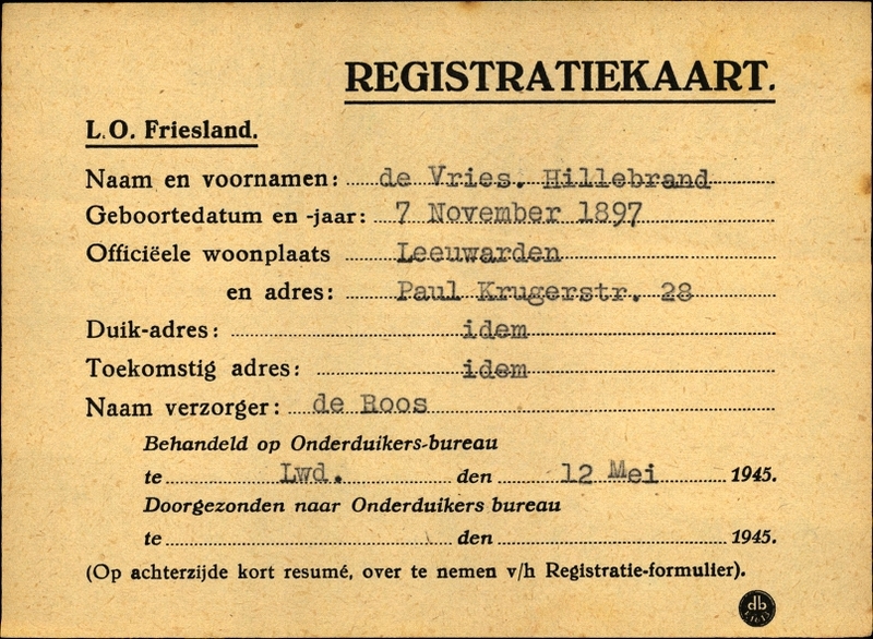 Duikadres: Paul Krugerstraat 28, Leeuwarden - Oorspronkelijk adres: Paul Krugerstraat 28, Leeuwarden - Reden onderduik: anderszins - Overige opmerkingen: Achterkant bijzonderheden: Ondergedoken wegens ? - Achterkant beroep: Theehandelaar
