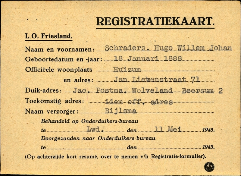Onderduikinschrijving van Hugo Willem Johan Schraders
