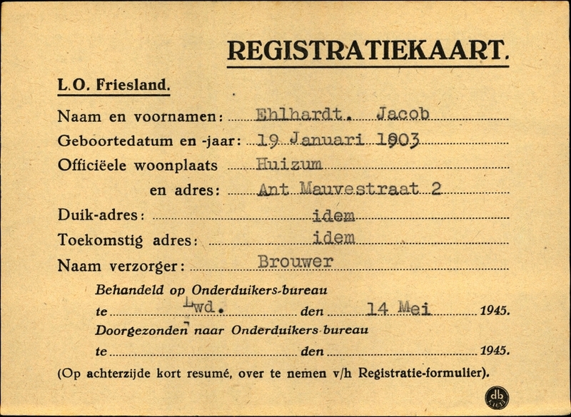 Onderduikinschrijving van Jacob Ehlhardt
