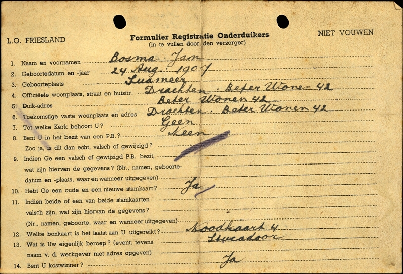 Duikadres: Beter Wonen 42, Drachten - Oorspronkelijk adres: Beter Wonen 42, Drachten - Reden onderduik: arbeidsinzet