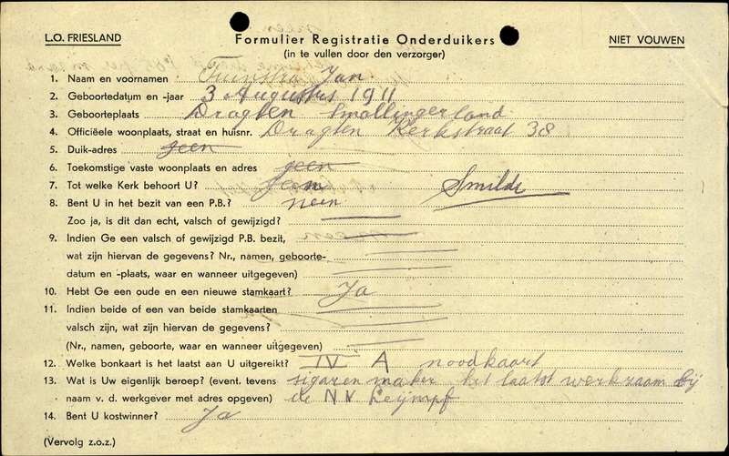 - Oorspronkelijk adres: Kerkstraat 38, Drachten - Reden onderduik: arbeidsinzet - Overige opmerkingen: Bijzondere opmerkingen: PB: neen Smilde.