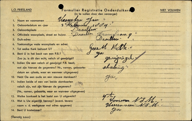 Duikadres: Drachten - Oorspronkelijk adres: Tramlaan 9, Drachten - Reden onderduik: staking