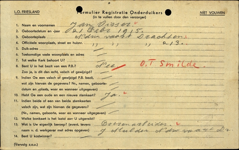 Duikadres: Noorderdwarsvaart 213, Drachten - Oorspronkelijk adres: Noorderdwarsvaart 213, Drachten - Reden onderduik: arbeidsinzet