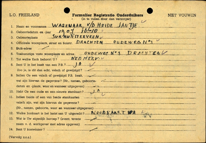 - Oorspronkelijk adres: Oudeweg 3, Drachten - Reden onderduik: staking