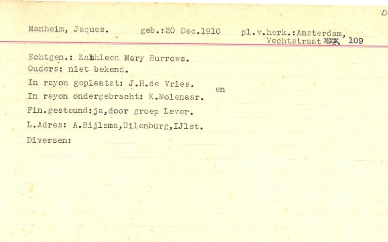 Onderduikinschrijving van Jaques Manheim