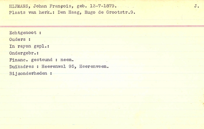 Onderduikregistratie van Johan Francois Hijmans