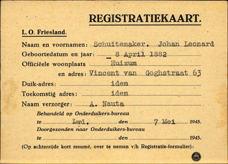 Onderduikinschrijving van Johan Leonard Schuitemaker
