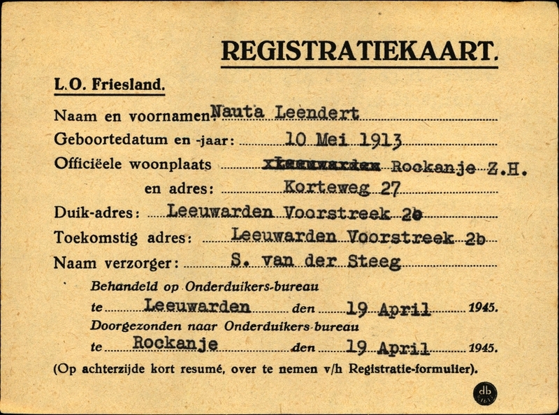 Duikadres: Voorstreek 2b, Leeuwarden - Oorspronkelijk adres: Korteweg 27, Rockanje - Reden onderduik: arbeidsinzet - Overige opmerkingen: Achterkant beroep: melkbezorger