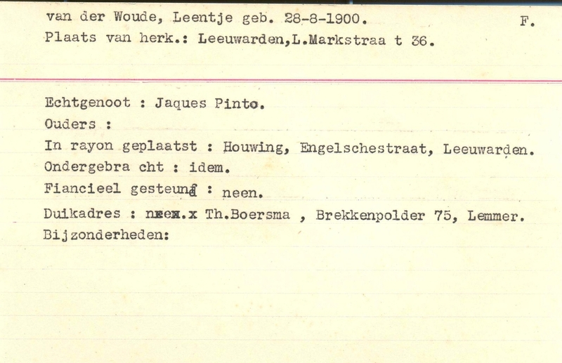 Onderduikinschrijving van Leentje van der Woude