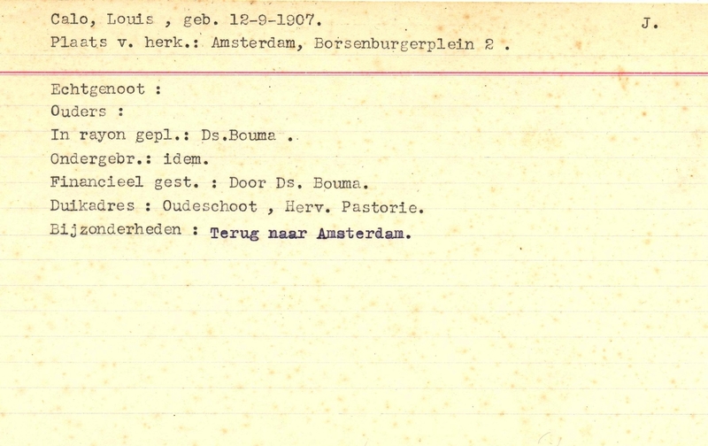 Onderduikinschrijving van Louis Calo
