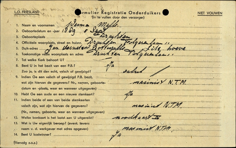 Onderduikregistratie van Melle Weima
